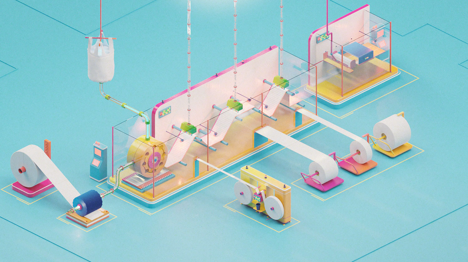 Vidéo 3D de présentation d'une usine de fabrication de couches pour la campagne "usines ouvertes" d'Agromousquetaires.